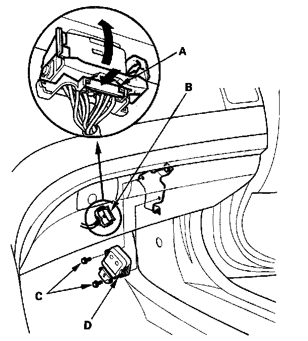 3. Remove the bolts (C), and the throttle actuator control module (D).