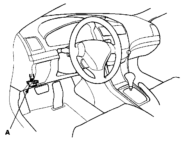 2. Connect the HDS to the data link connector (DLC) (A) located under the driver's side of the dashboard.