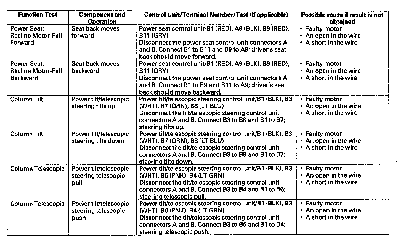 - If the test indicates that the component operates normally, but the function will not operate by doing the function test or the normal use of the component, the control unit that operates that function must be faulty; replace it.