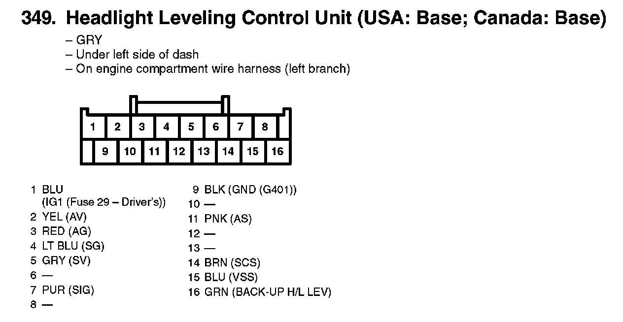 349. Headlight Leveling Control Unit (USA: Base; Canada: Base):