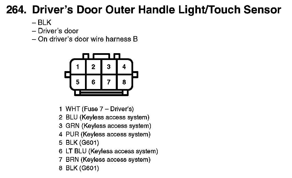 264. Driver's Door Outer Handle Light/Touch Sensor: