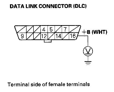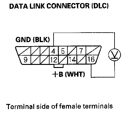 2. Measure voltage between DLC terminals No. 4 and No. 16.