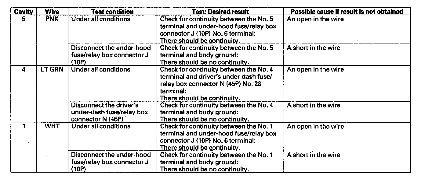 7. Reconnect the 8P connector to the wiper/washer switch, and make these input tests at the connector.