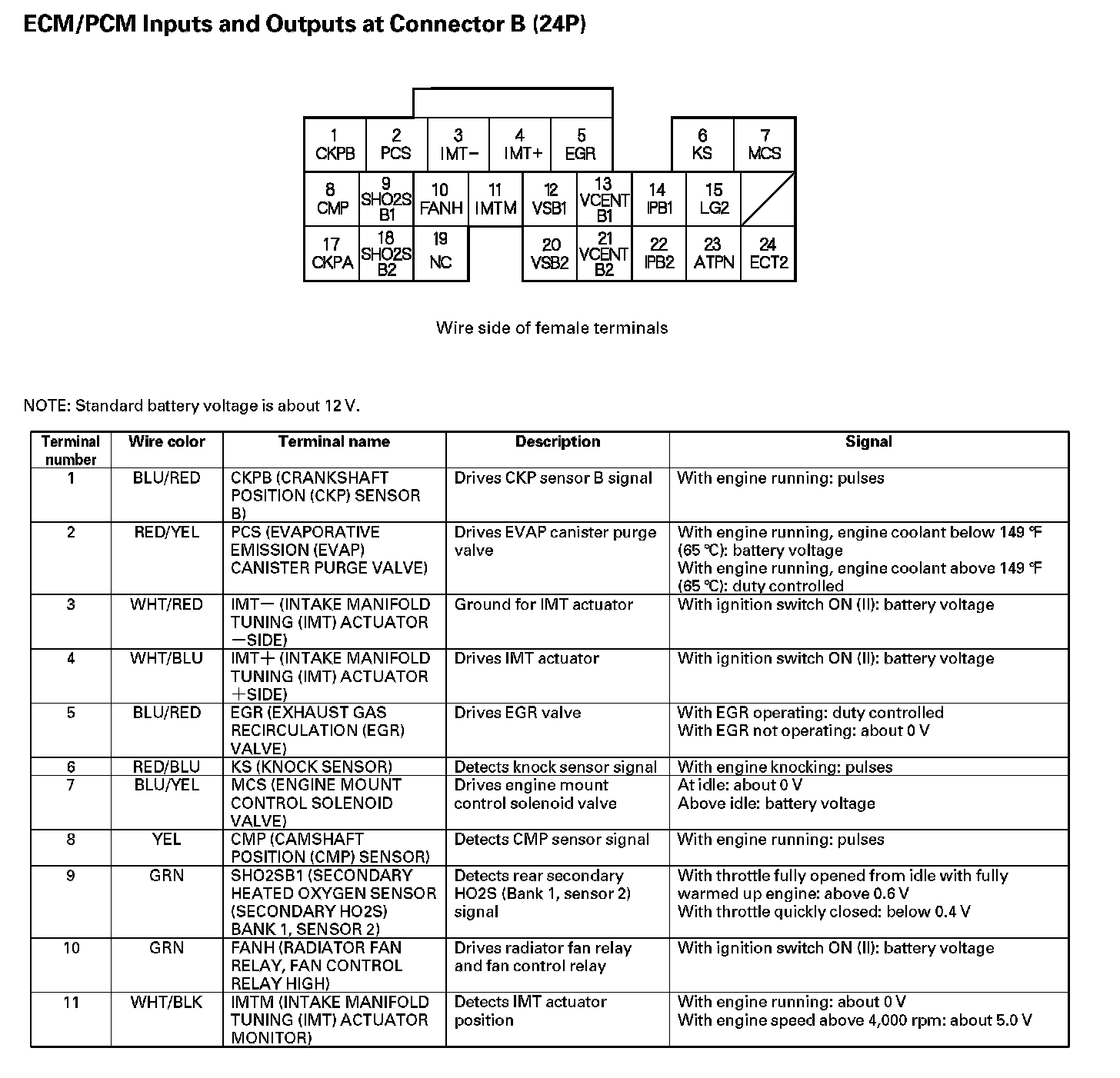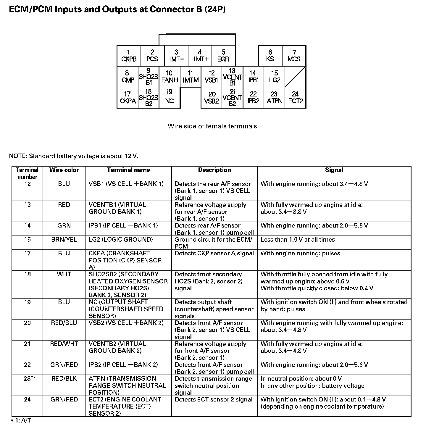 ECM/PCM Inputs And Outputs At Connector B (24P) (Part 1):