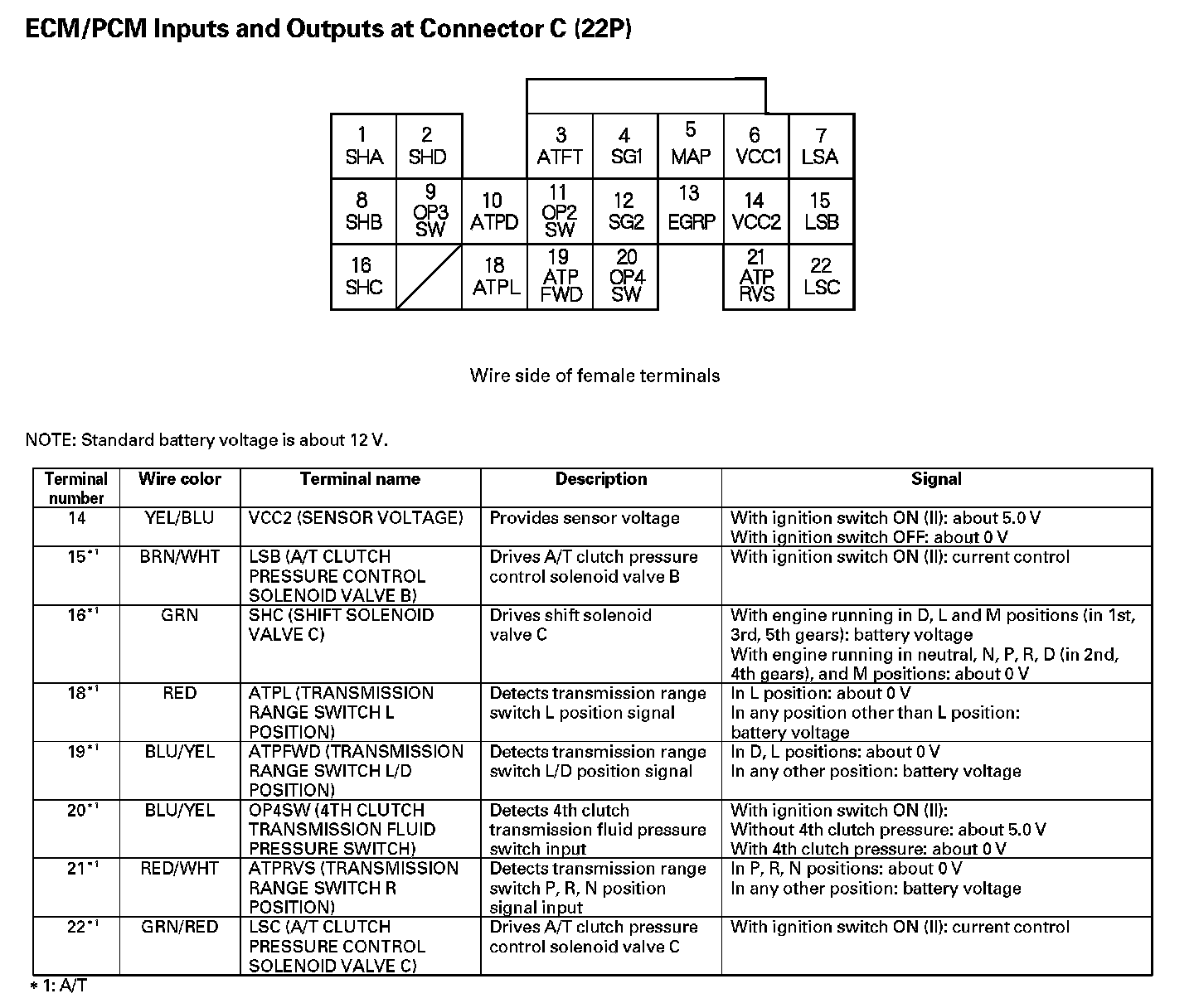ECM/PCM Inputs And Outputs At Connector C (22P) (Part 1):