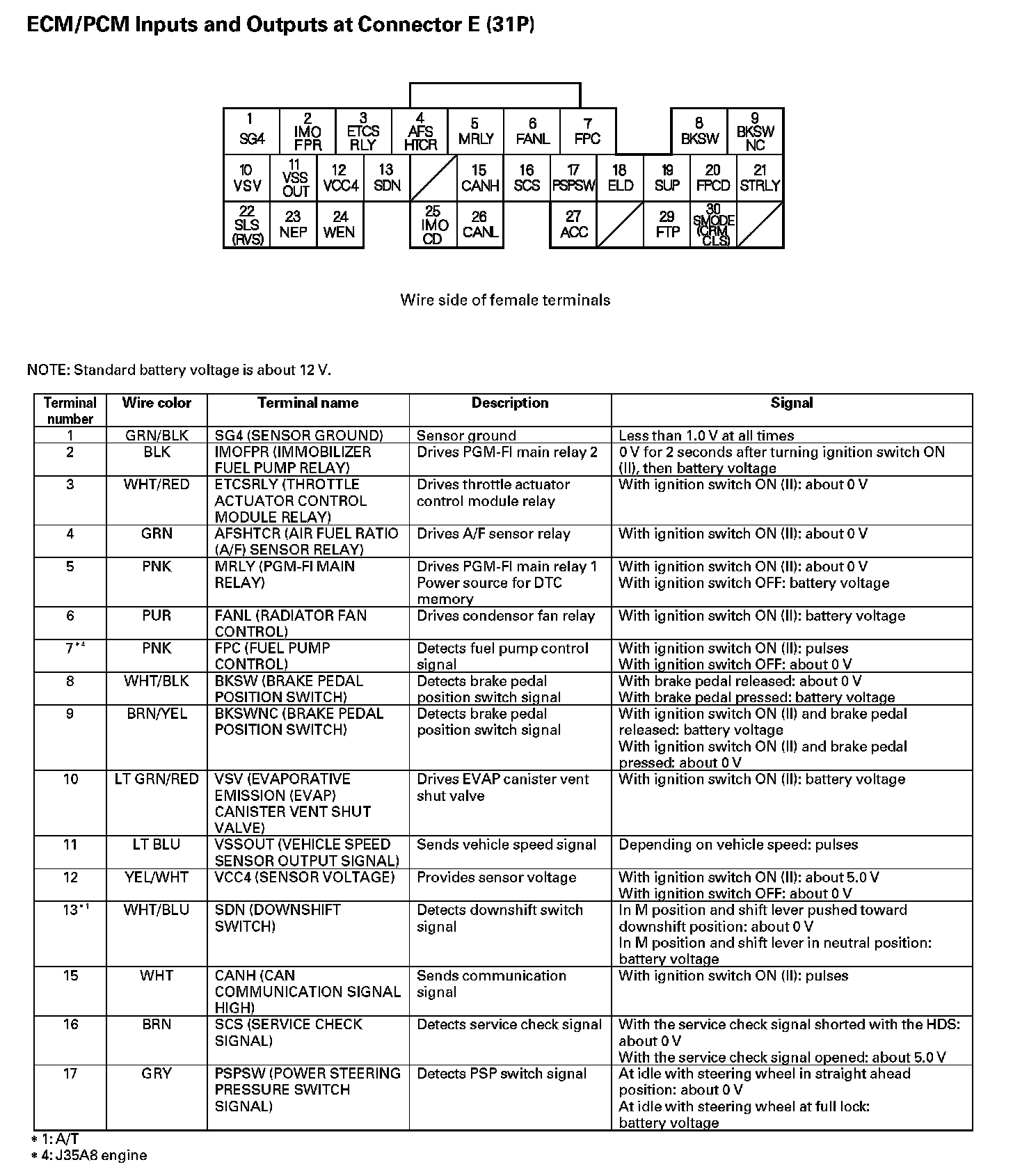 ECM/PCM Inputs And Outputs At Connector E (31P) (Part 1):