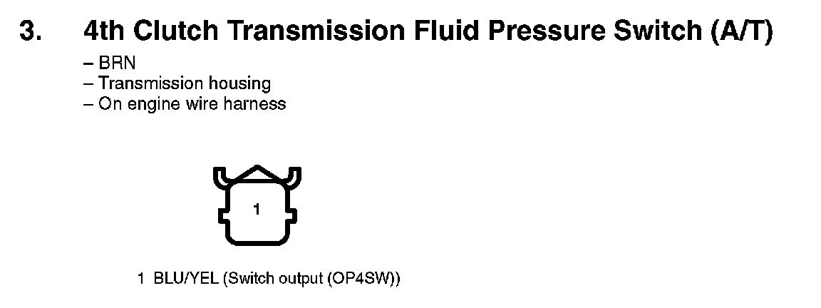 3. 4th Clutch Transmission Fluid Pressure Switch (A/T):