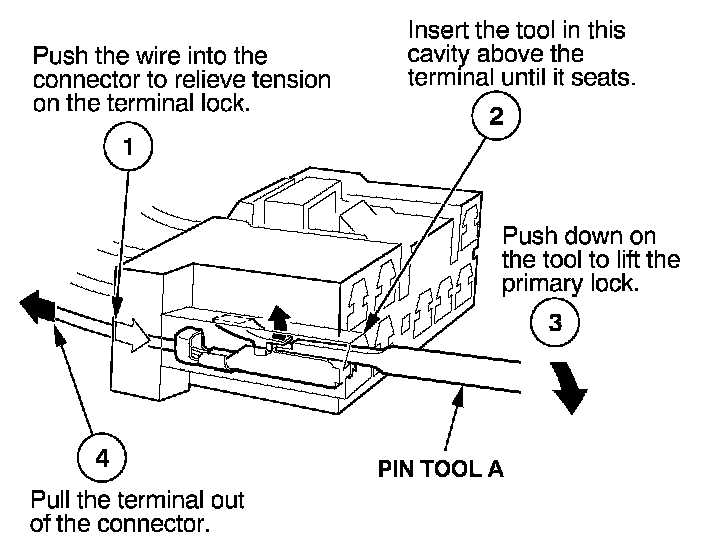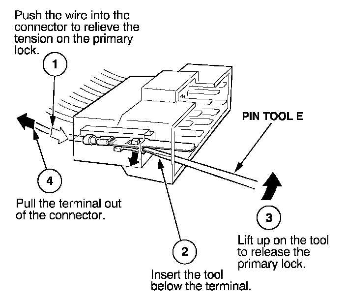 Before you begin, inspect the wire you are about to repair for damage and length. Make sure the wire will be long enough to make a terminal repair without stretching it when you reinstall the terminal in the connector. If the wire is too short, or if access to the connector is too restricted to make a terminal repair, you may need to install a pigtail terminal (a short length of wire with a factory-crimped terminal on it). Refer to HOW TO INSTALL PIGTAIL TERMINALS.
