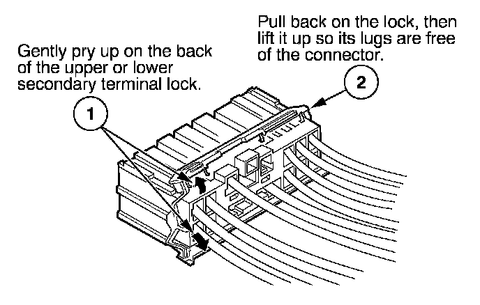 - If it has a secondary terminal lock, go to Connectors With a Secondary Lock. A secondary lock, found on most connectors on some models, is an additional locking device on the connector housing as a backup for the primary lock on the terminal.