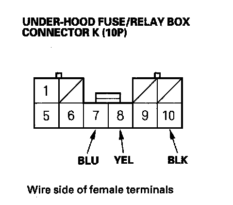 2. Disconnect the under-hood fuse/relay box connector K (10P).