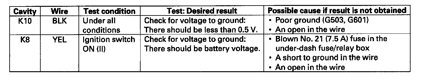 Home >> Acura >> 2007 >> TL V6-3.2L >> Repair and Diagnosis >> Powertrain Management >> Computers and Control Systems >> Information Bus >> Testing and Inspection >> Component Tests and General Diagnostics >> Relay Control Module Input Test