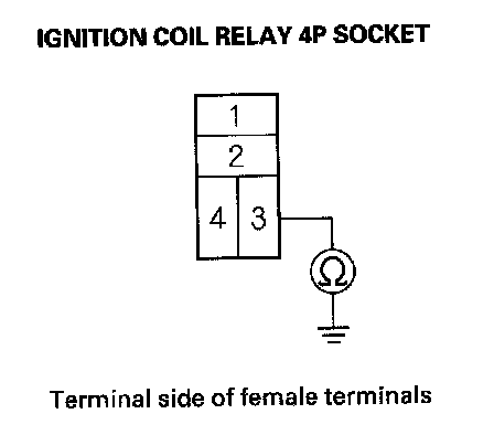 11. Check for continuity between ignition coil relay 4P socket terminal No. 3 and body ground.