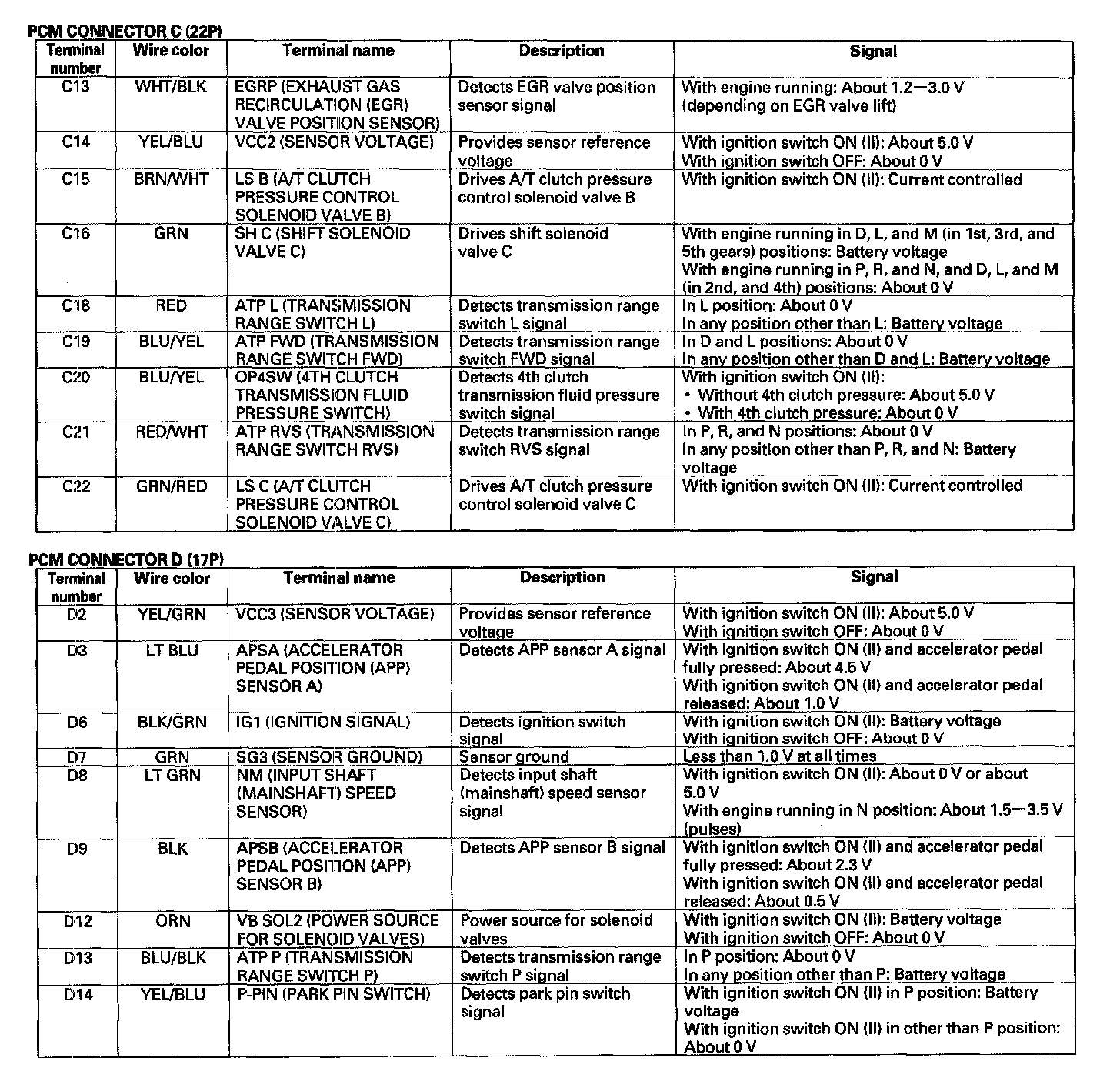 PCM A/T Control System Inputs and Outputs (Part 2):