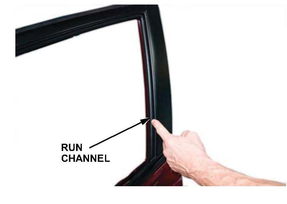4. Inspect the run channel alignment, both inside and outside the door. Pay close attention just below the door skin; this is a common area for the run channel to be pinched.