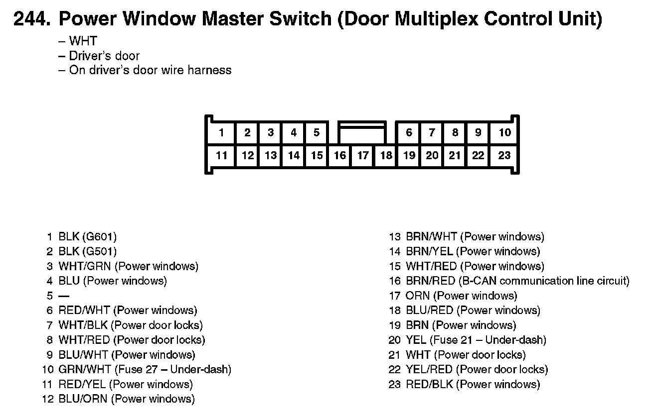 244. Power Window Master Switch (Door Multiplex Control Unit):