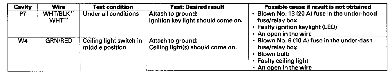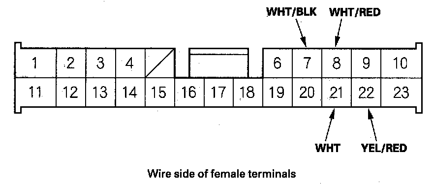 5. Reconnect the connectors to the under-dash fuse/relay box, turn the ignition switch ON (II), and make these input tests at the appropriate connectors on the under-dash fuse/relay box.