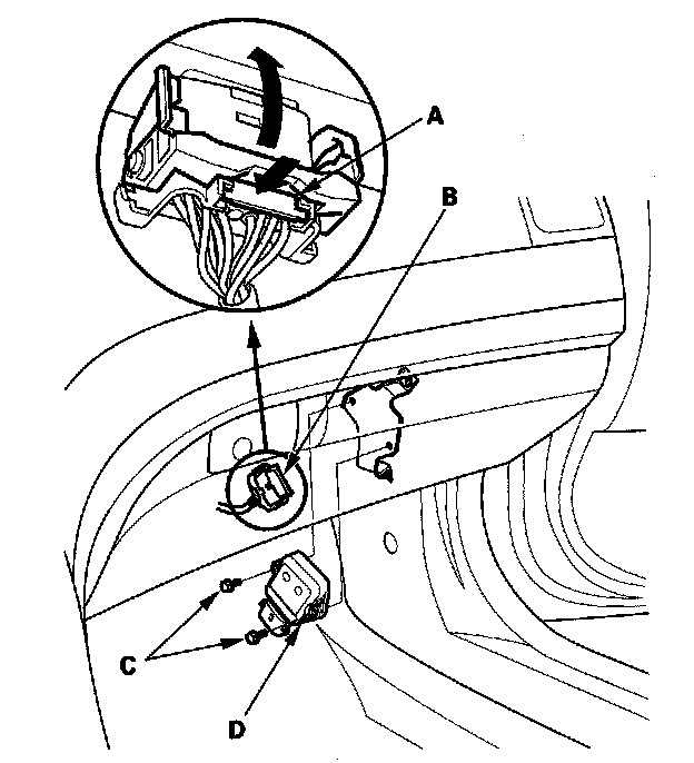 3. Remove the bolts (C), and the throttle actuator control module (D).