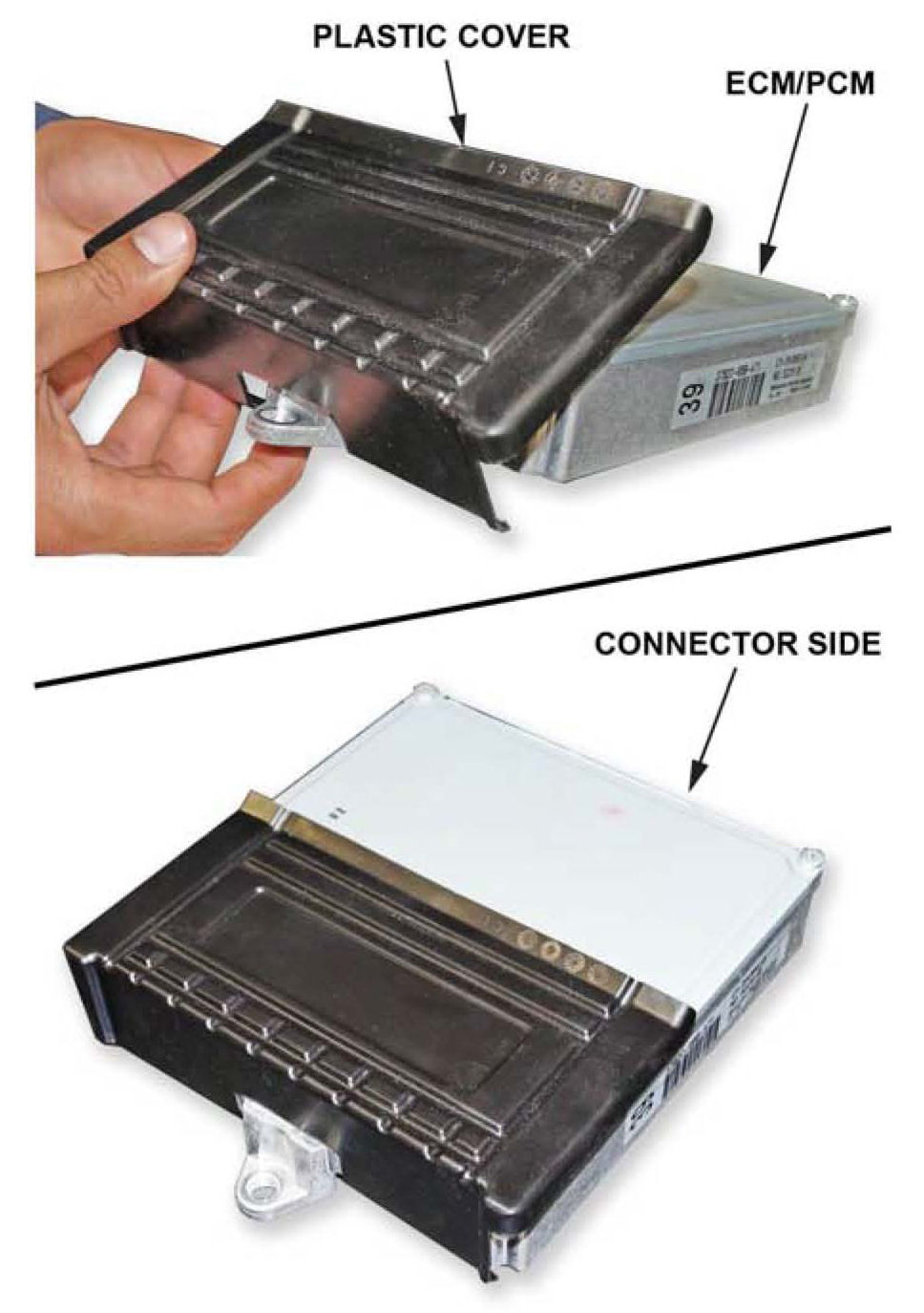 7. Install the plastic cover onto the ECM/PCM as shown.
