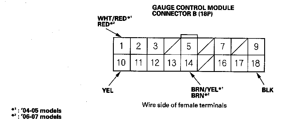 5. Disconnect the 18P connector from the gauge control module, and make these input tests at the connector.