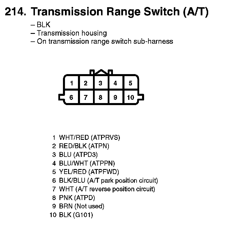 211. Transmission Gear Selection Switch/Park Pin Switch/A/T Gear Position Indicator Panel Light (A/T):