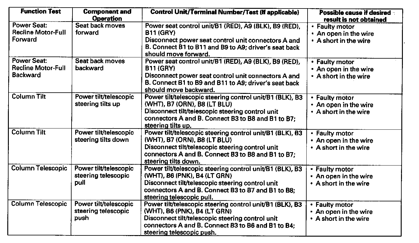 - If the test indicates that the component operates normally, but the function will not operate by doing the function test or the normal use of the component, the control unit that operates that function must be faulty; replace it.