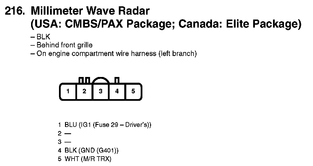 216. Millimeter Wave Radar (USA: CMBS/PAX Package; Canada: Elite Package):