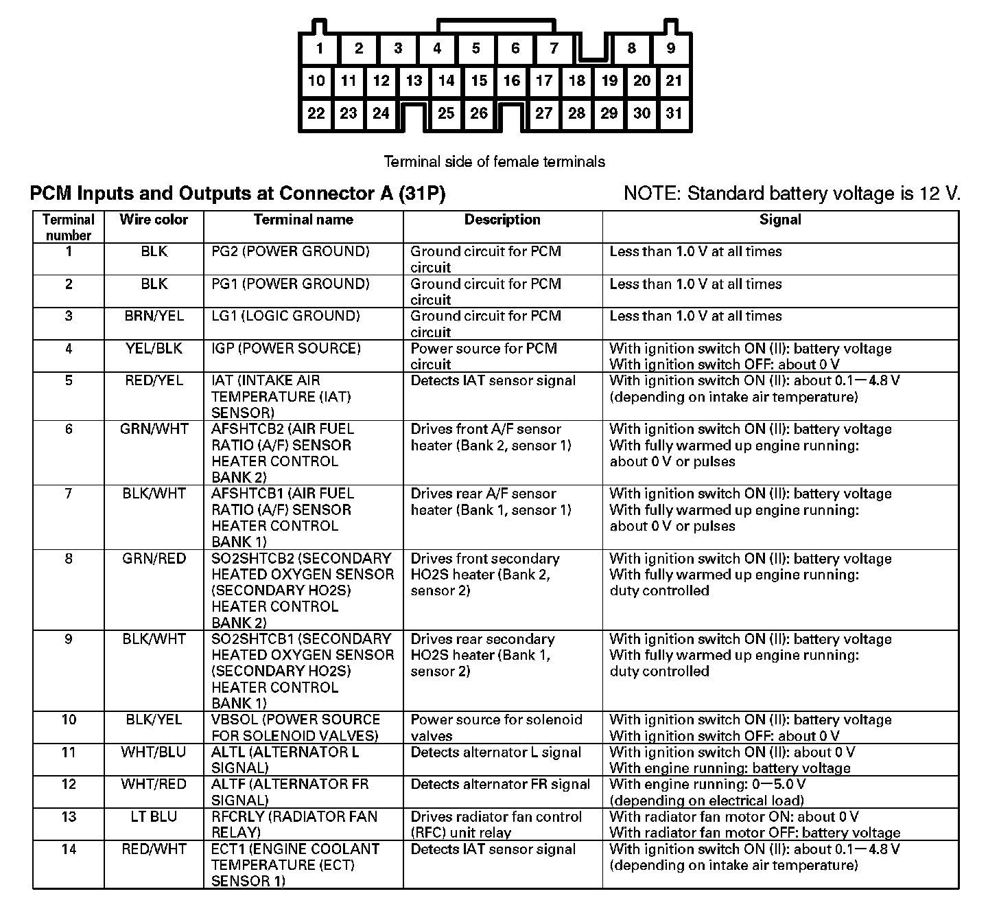 PCM Inputs And Outputs At Connector A (31P) (Part 1):