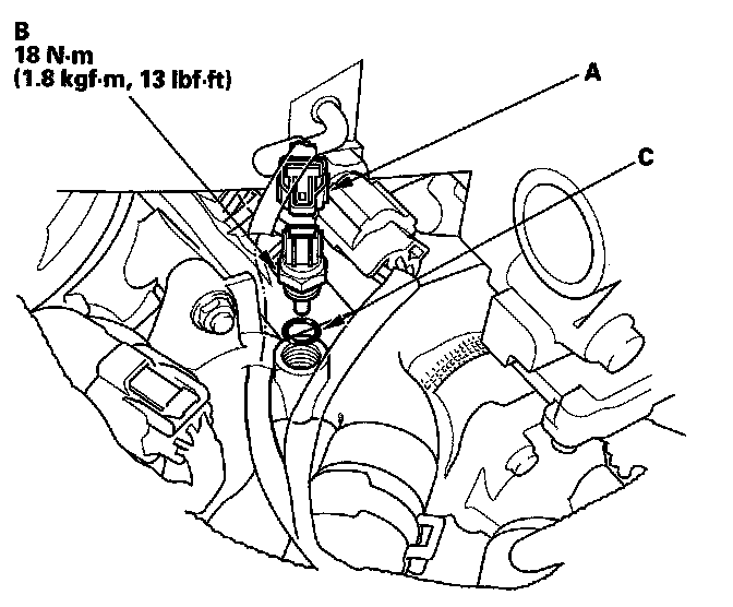 5. Install the parts in the reverse order of removal with a new O-ring (C). Then refill the radiator with engine coolant.