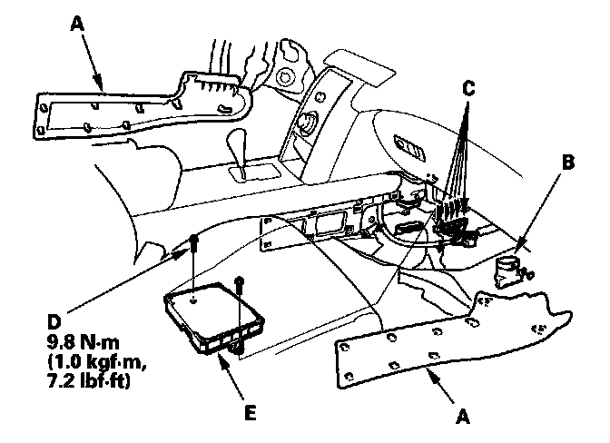 13. Remove the bolts (D), then remove the PCM (E).