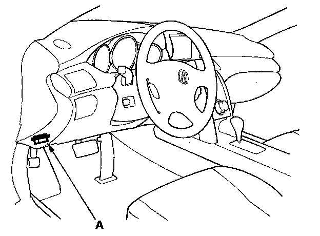 2. Connect the HDS to the data link connector (DLC) (A) located under the driver's side of the dashboard.