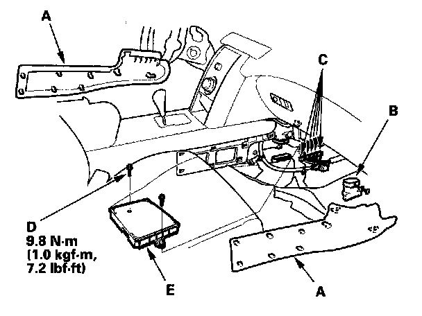10. Remove the bolts (D), then remove the PCM (E).