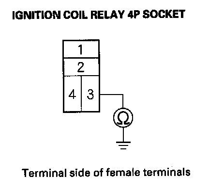 7. Check for continuity between ignition coil relay 4P socket terminal No. 3 and body ground.