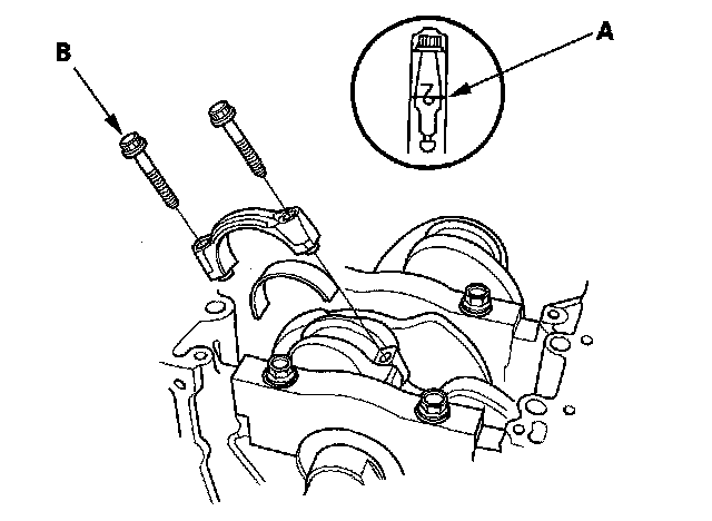 Measure the diameter of each cylinder head bolt at point A and point B.