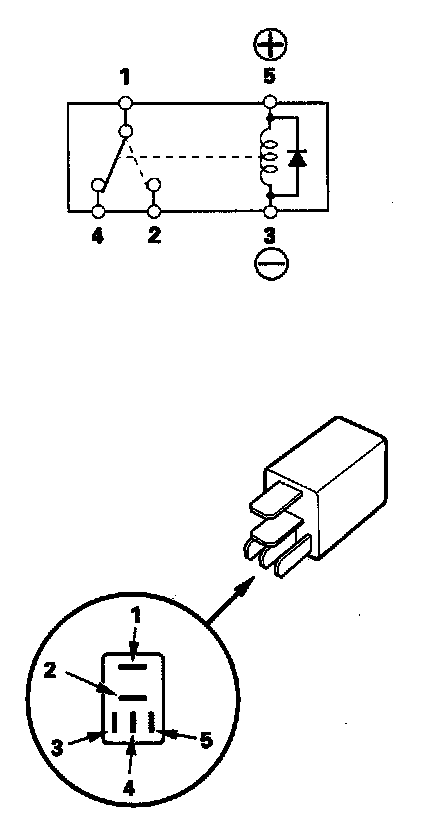 - There should be continuity between the No. 1 and No. 2 terminals when battery positive terminal is connected to the No. 5 terminal, and battery negative terminal is connected to the No. 3 terminal.