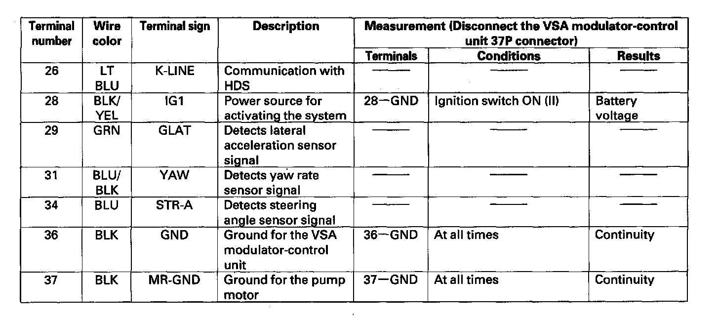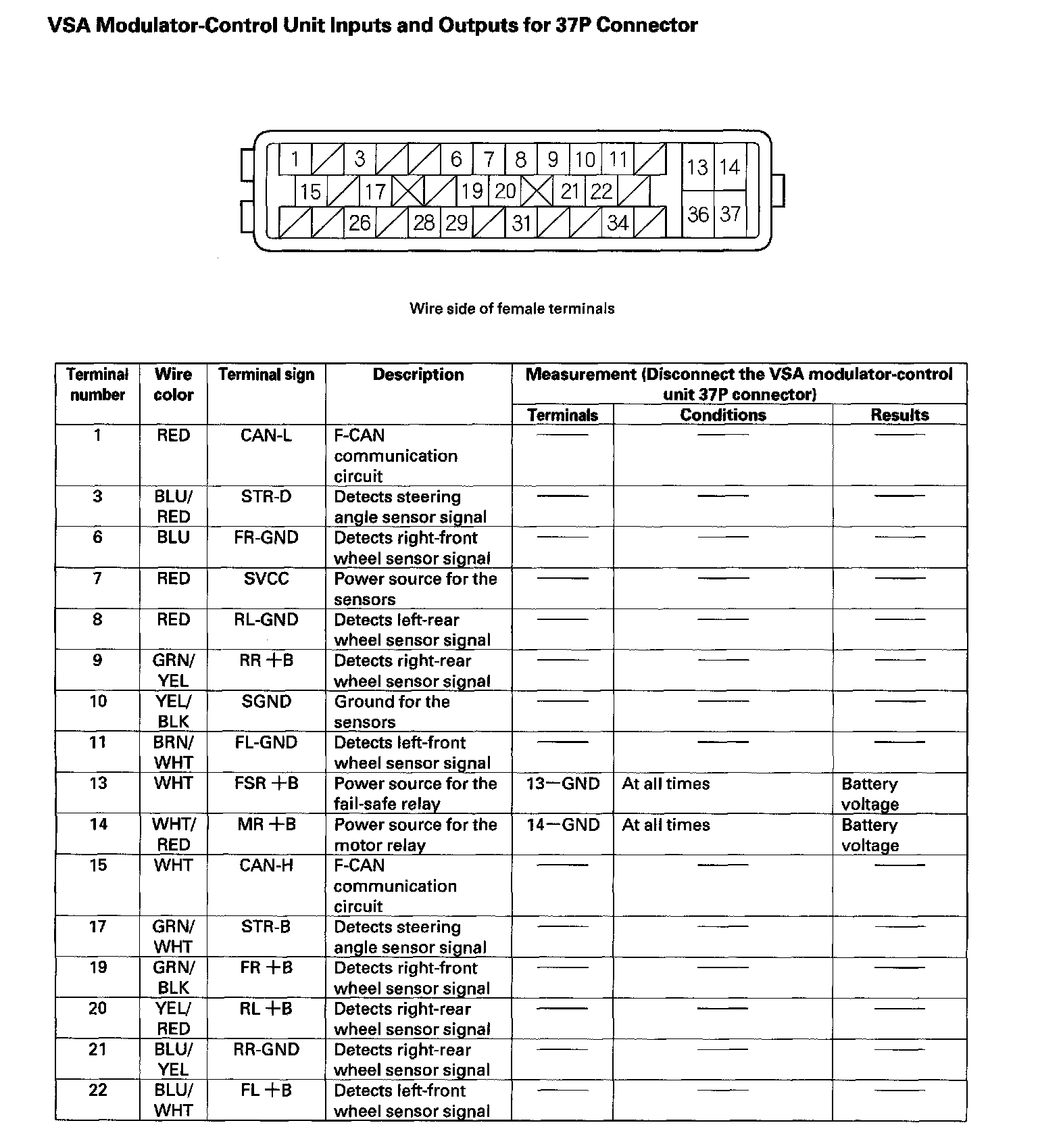 VSA Modulator-Control Unit Inputs and Outputs for 37P Connector: