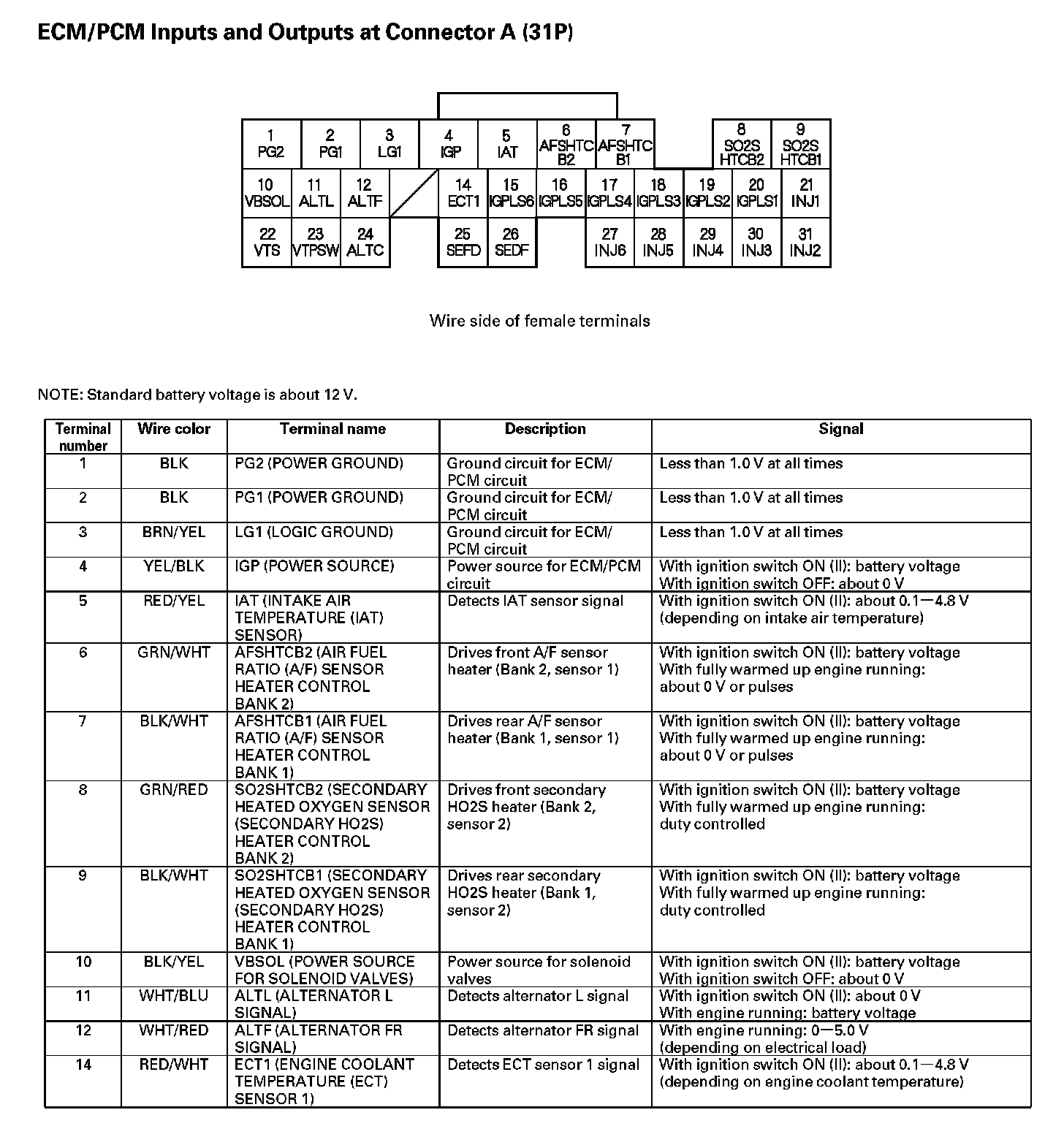 ECM/PCM Inputs And Outputs At Connector A (31P) (Part 2):