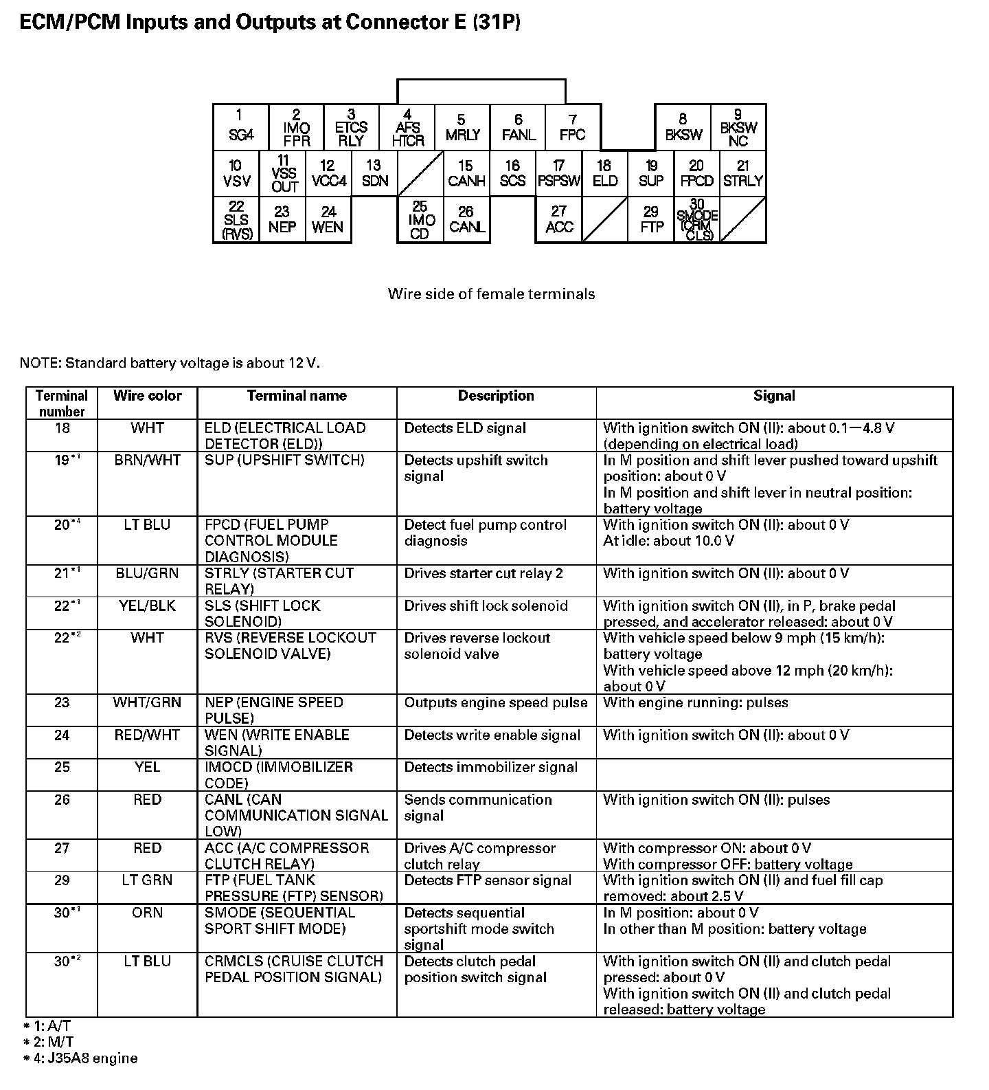 ECM/PCM Inputs And Outputs At Connector E (31P) (Part 1):