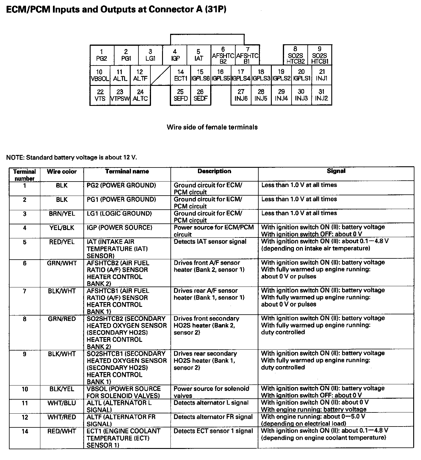 ECM/PCM Inputs And Outputs At Connector A (31P) Part 1: