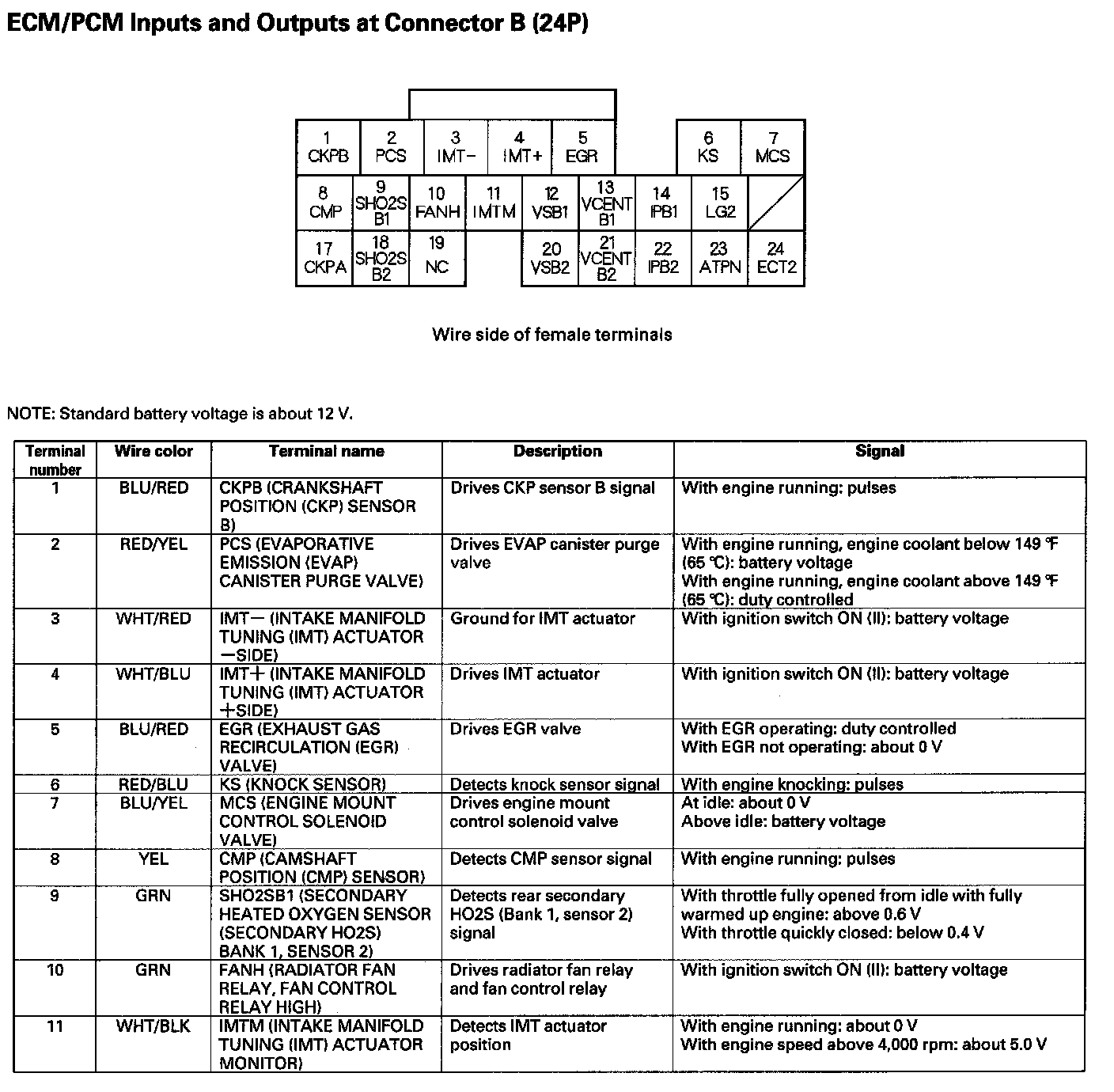ECM/PCM Inputs And Outputs At Connector B (24P) Part 2: