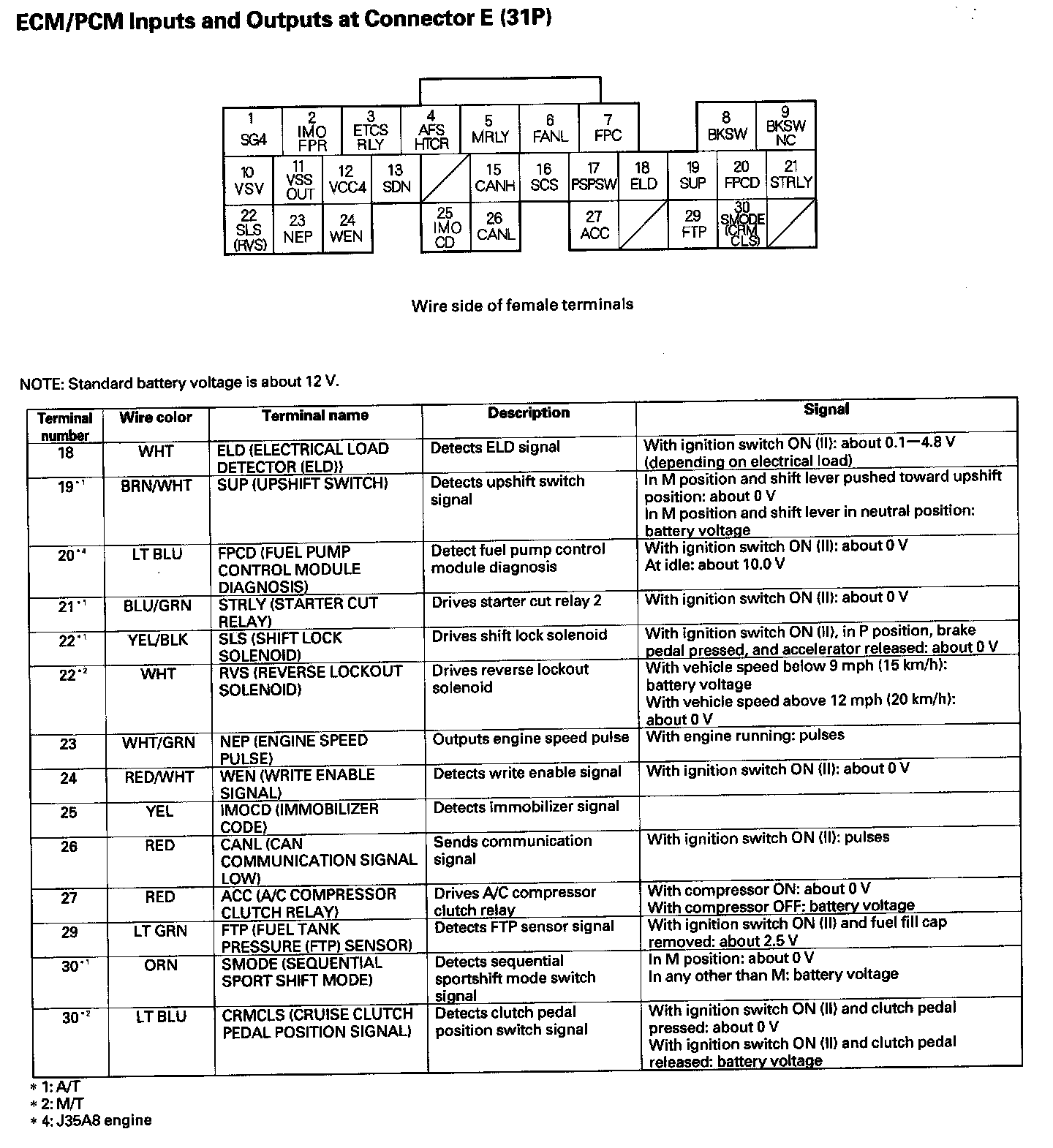 ECM/PCM Inputs And Outputs At Connector E (31P) Part 1: