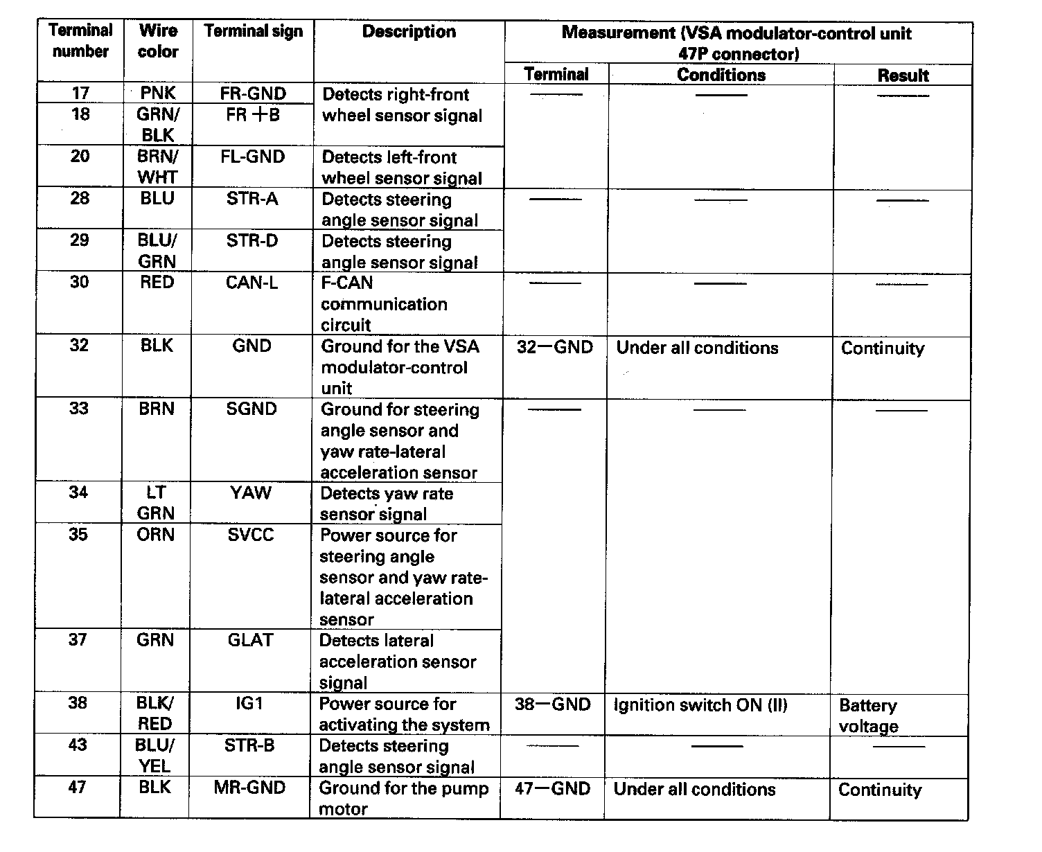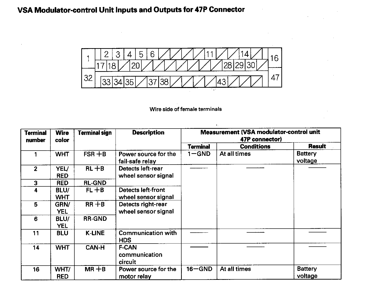VSA Modulator-control Unit Inputs and Outputs for 47P Connector (Part 1):