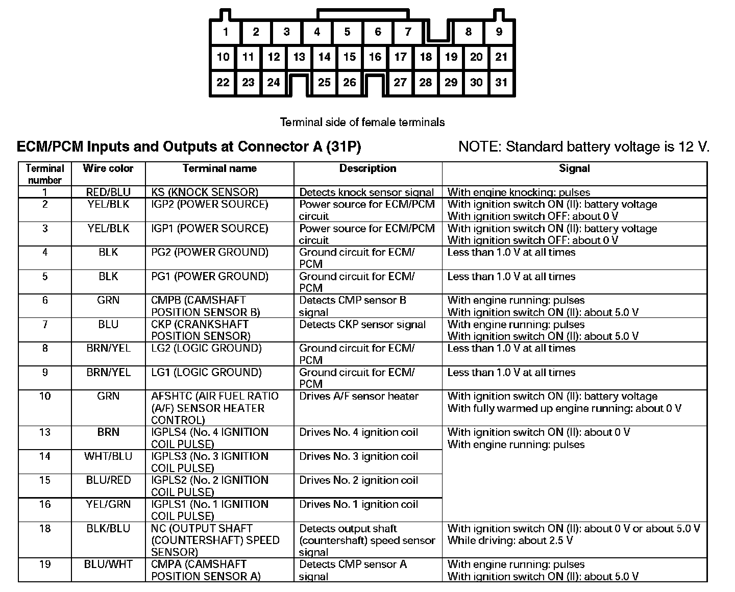 ECM/PCM Inputs And Outputs At Connector A (31P) (Part 1):