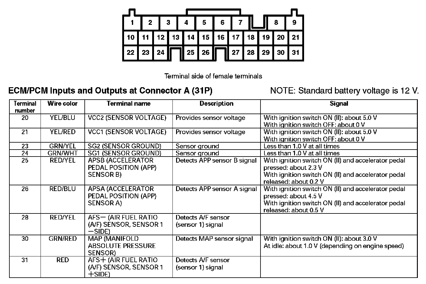 Home >> Acura >> 2008 >> TSX L4-2.4L >> Repair and Diagnosis >> Diagrams >> Connector Views >> Engine Control Module >> ECM/PCM Inputs and Outputs