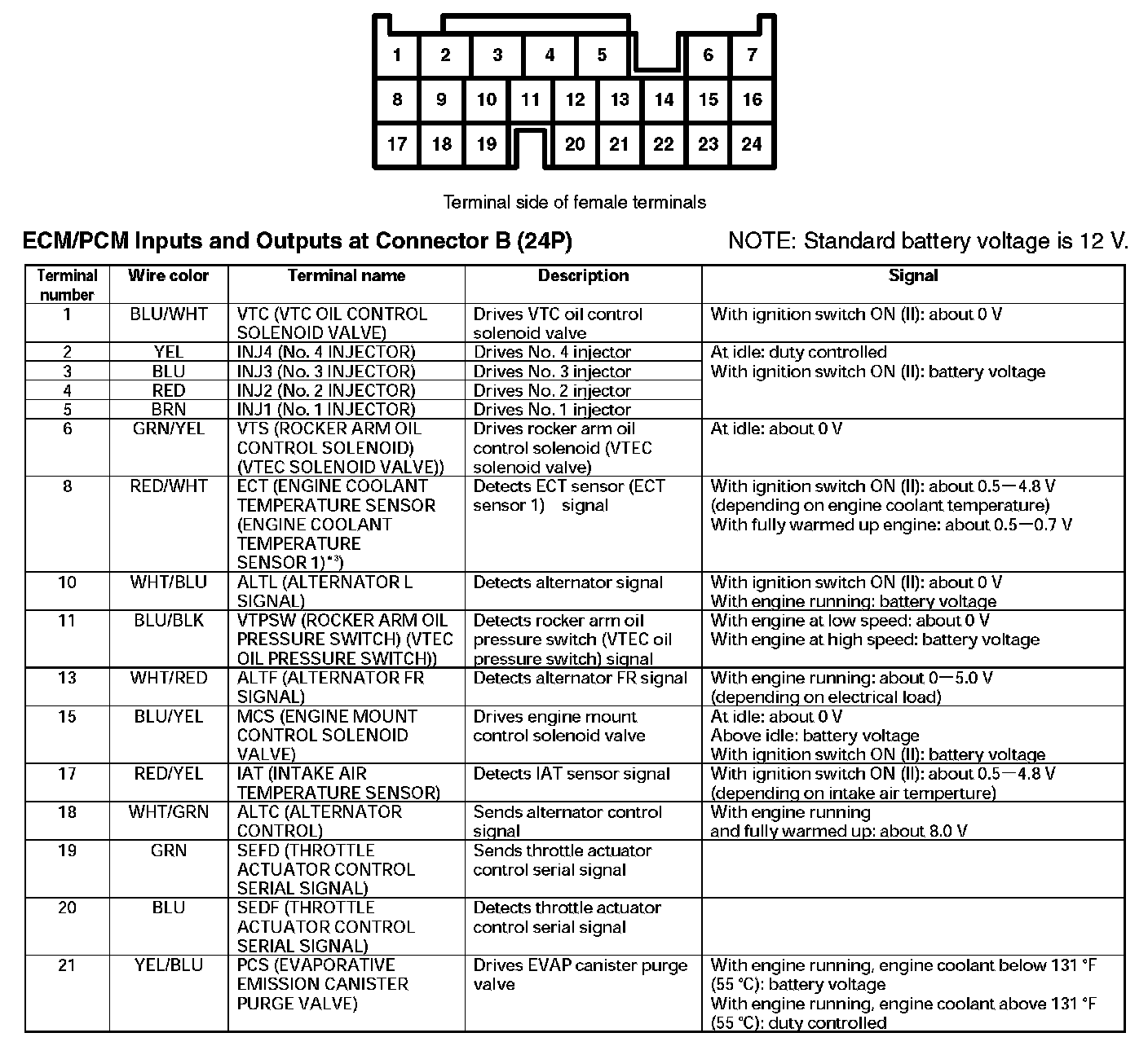 ECM/PCM Inputs And Outputs At Connector B (24P):