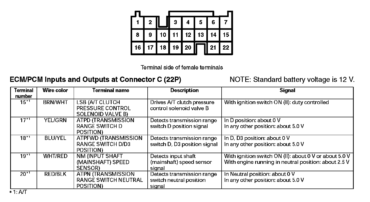 ECM/PCM Inputs And Outputs At Connector C (22P) (Part 1):