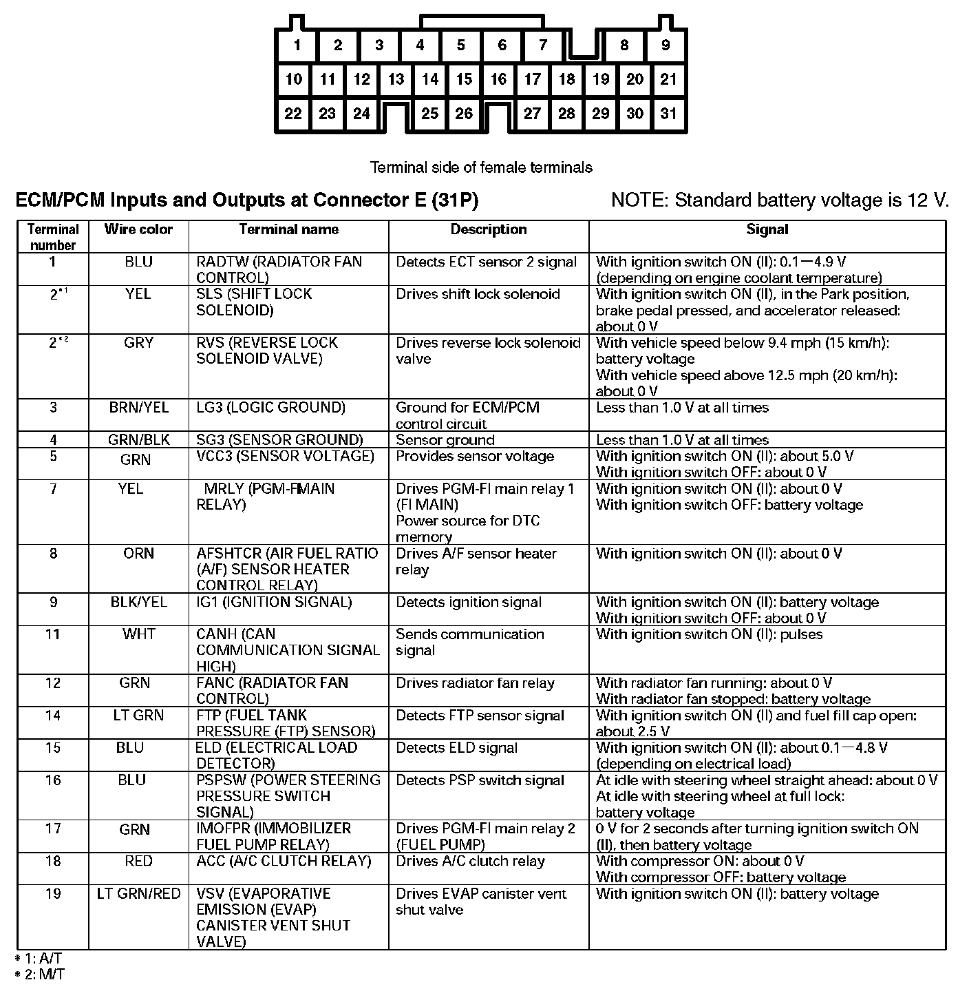ECM/PCM Inputs And Outputs At Connector E (31P) (Part 1):