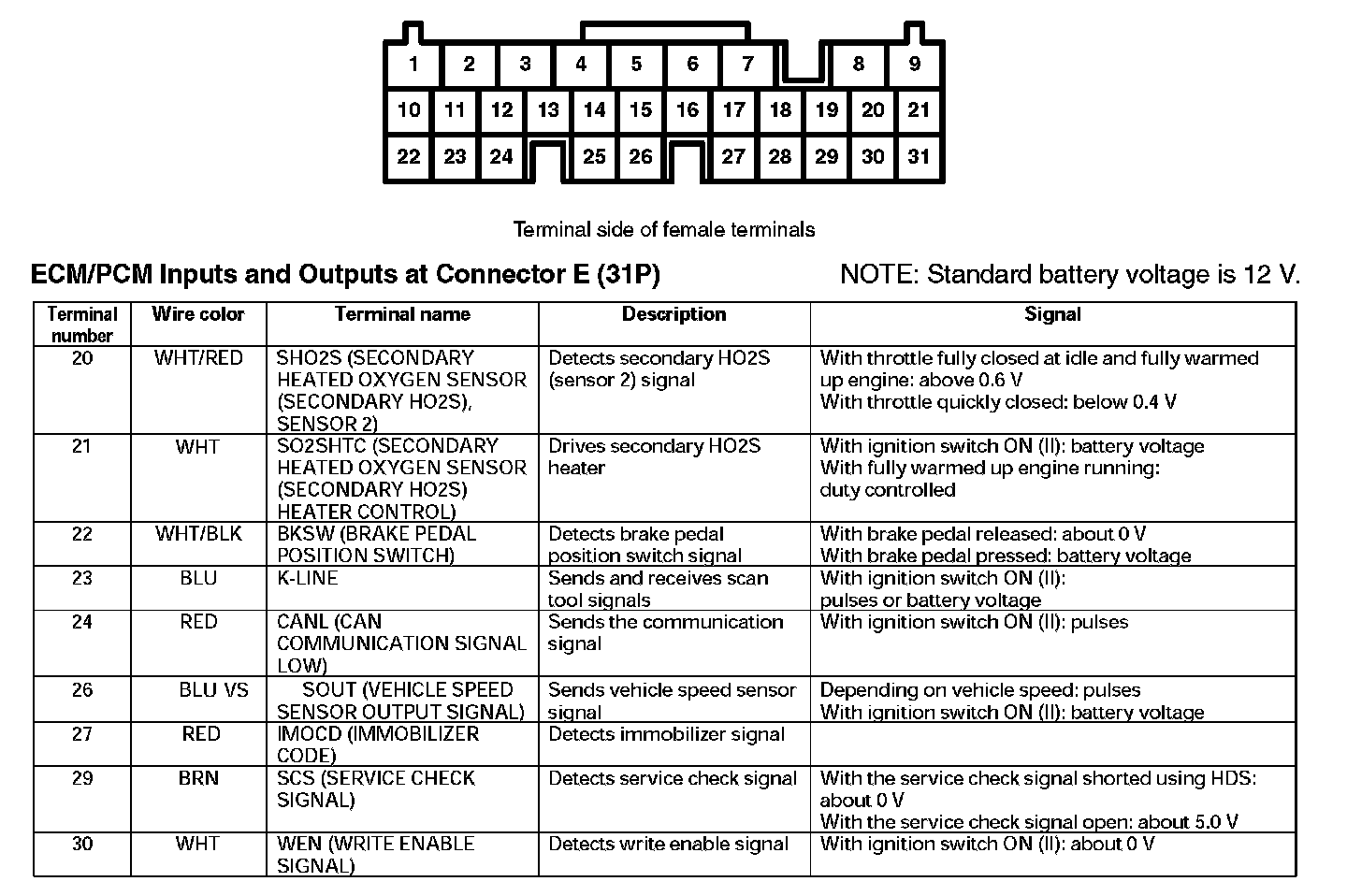 ECM/PCM Inputs And Outputs At Connector E (31P) (Part 2):