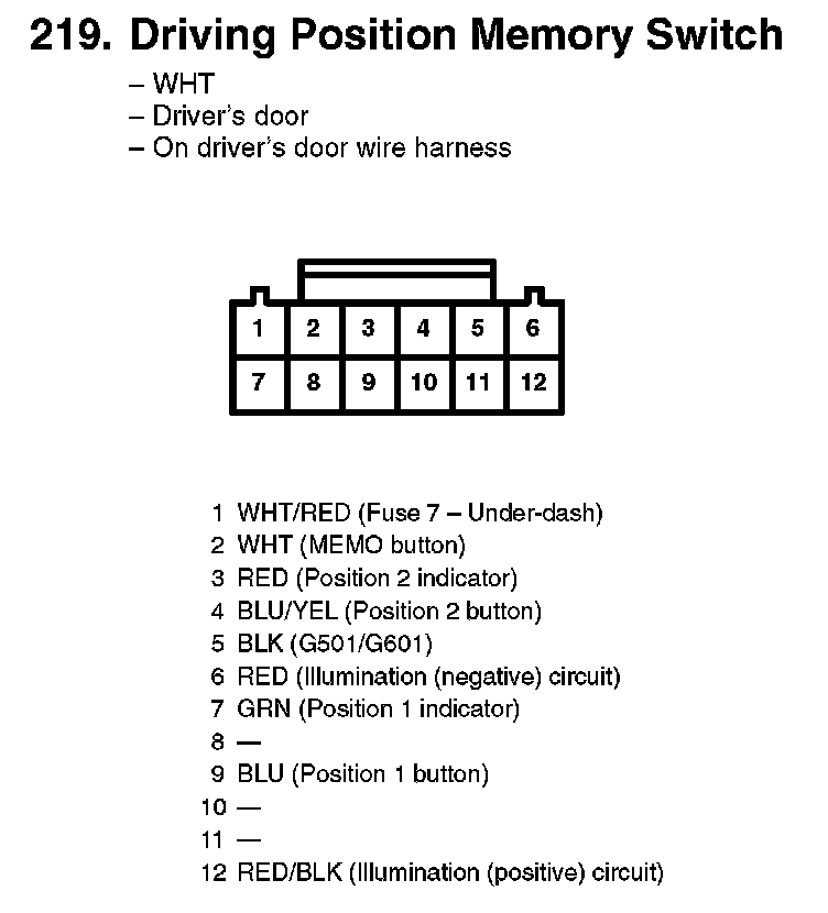 219. Driving Position Memory Switch: