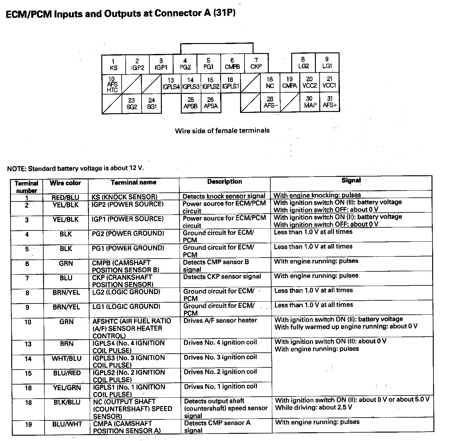ECM/PCM Inputs And Outputs At Connector A (31P) Part 1: