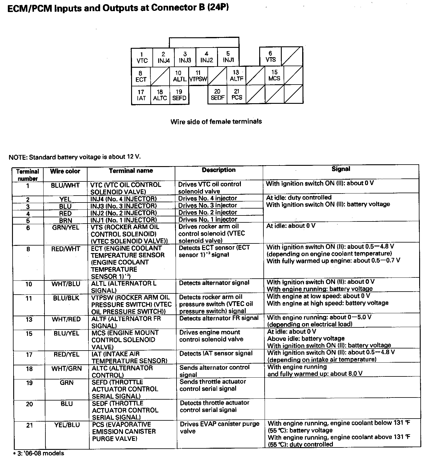 ECM/PCM Inputs And Outputs At Connector B (24P):